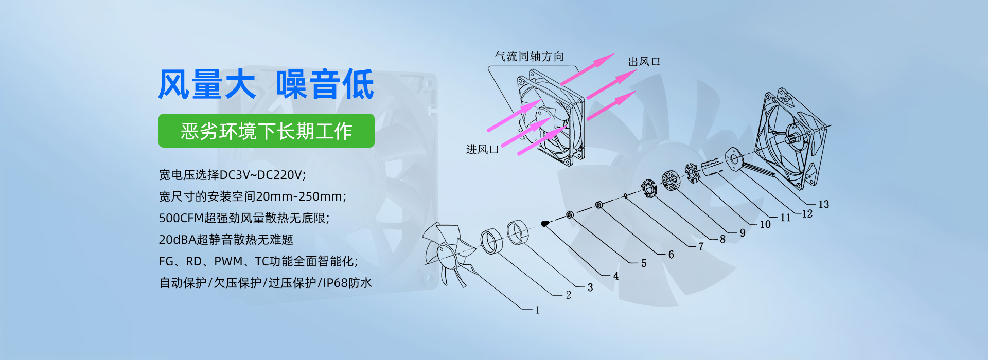 深圳市毅榮川電子科技有限公司于2005年創(chuàng)立于中國(guó)深圳、是一家專業(yè)研發(fā)、生產(chǎn)、銷售散熱風(fēng)扇的高科技企業(yè)。所生產(chǎn)的直流風(fēng)扇、交流風(fēng)扇、鼓風(fēng)機(jī)、防水/防塵風(fēng)扇、EC變頻風(fēng)扇、直流散熱風(fēng)扇、汽車散熱風(fēng)扇、靜音散熱風(fēng)扇、支架散熱風(fēng)扇、渦輪增壓風(fēng)扇、直流散熱風(fēng)機(jī)、直流離心風(fēng)機(jī)、直流鼓風(fēng)機(jī)、鼓風(fēng)機(jī)廠家、新能源風(fēng)扇、無(wú)刷馬達(dá)等,已廣泛應(yīng)用于:通訊設(shè)備、UPS電源、醫(yī)療器械、電焊機(jī)、工控設(shè)備、家用電器、空氣凈化行業(yè)、汽車行業(yè)、投影儀、美容儀器、運(yùn)動(dòng)器材等行業(yè)領(lǐng)域。